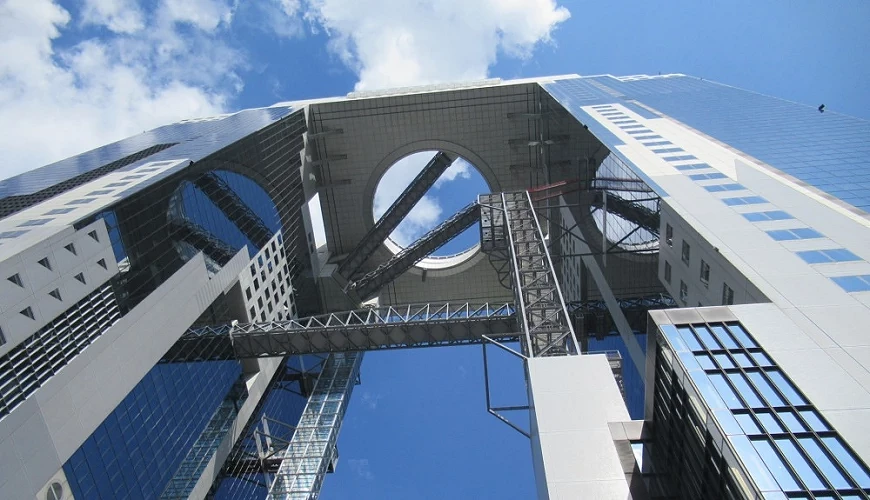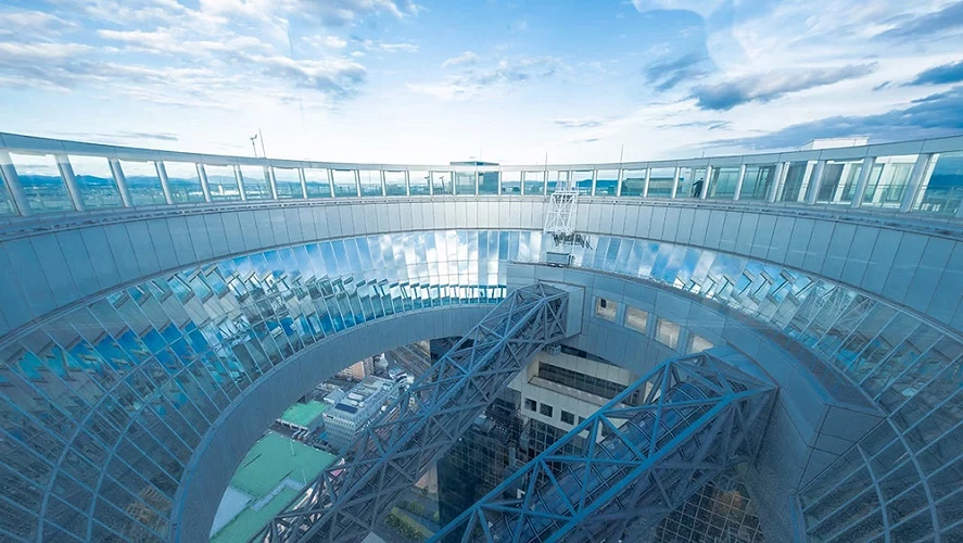 空中庭園不僅提供360度的全景視野,可俯瞰整個大阪市區與遠方六甲山。大樓內部設有辦公室、餐廳、電影院及商業設施,兼具觀光與商業功能。其前衛的造型與創新的結構設計,曾被英國《泰晤士報》評選為「世界建築TOP 20」,成為日本後現代建築的代表之一,也是造訪大阪不可錯過的地標建築。