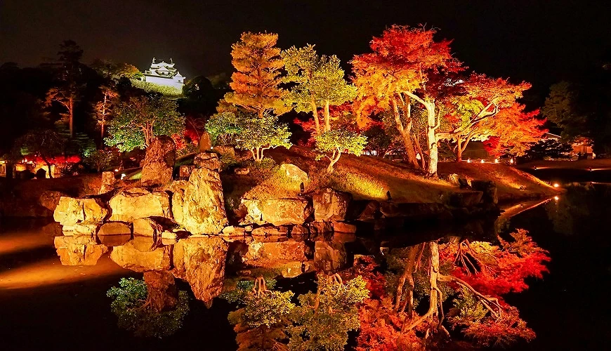 彥根城玄宮園紅葉點燈