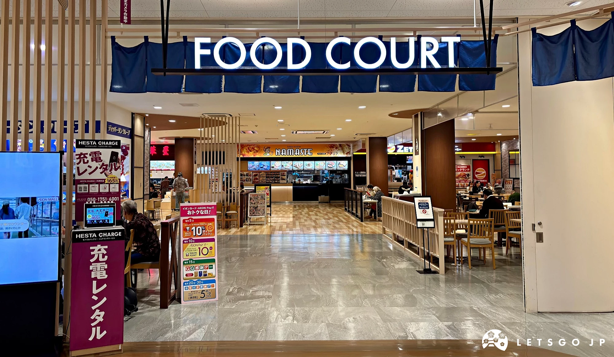 逛街購物之餘,要記得填飽肚子。位於2F的美食區,入口以暖簾設計,加上木質調設計的用餐區,明亮整潔且充滿和風氣息。提供烏龍麵、拉麵、速食、可麗餅等多種選擇。