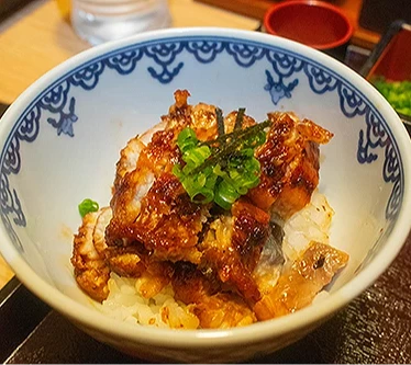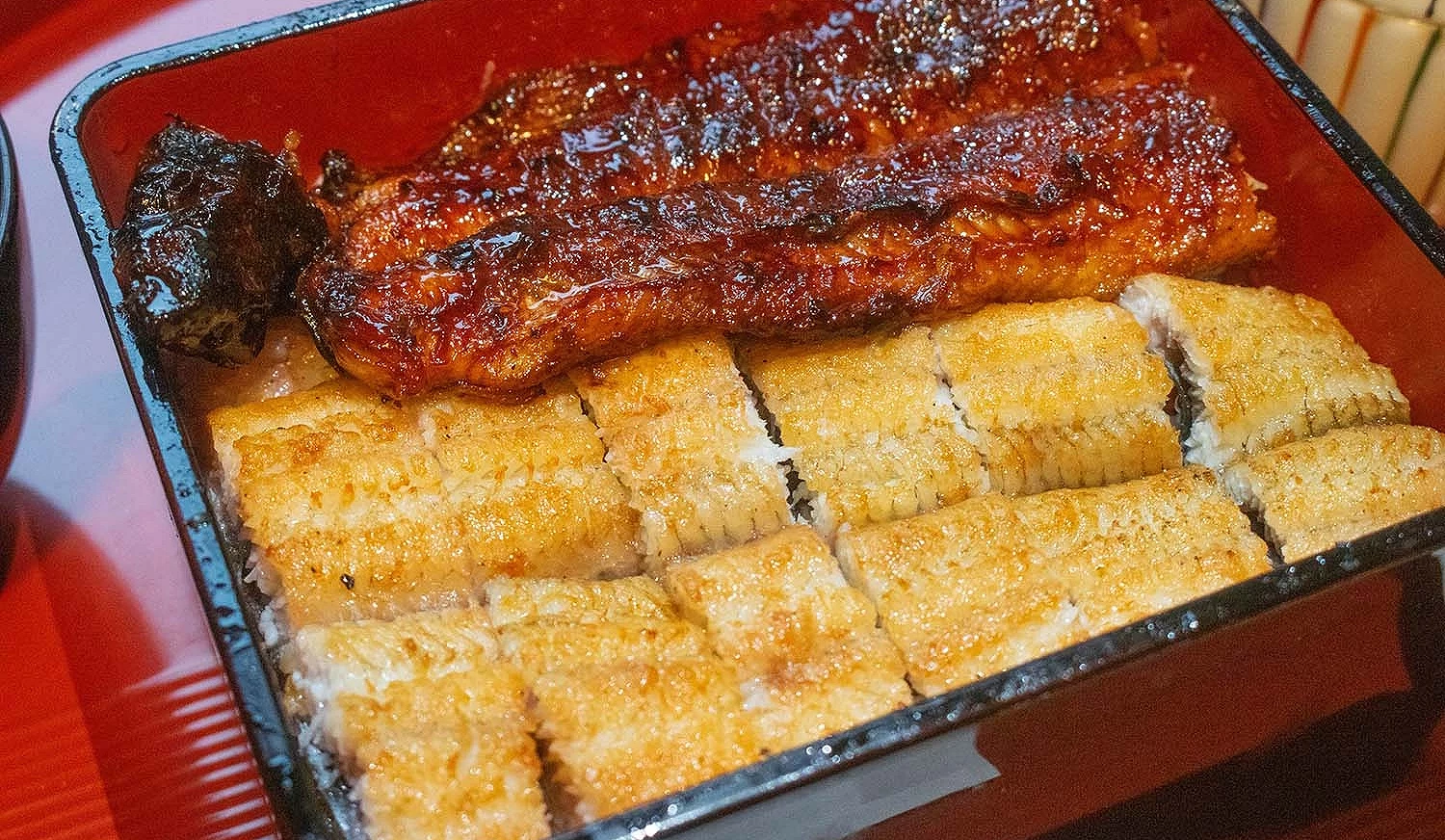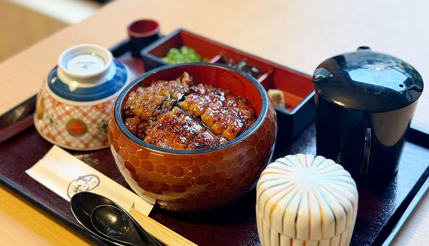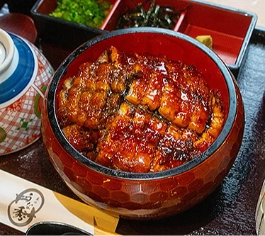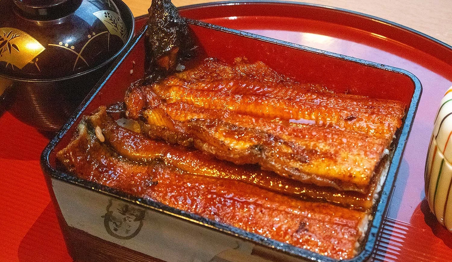 油脂豐美、口感柔軟的鰻魚在日本一直是健康營養且高級的食材。這款用高級方形漆器裝的鰻魚盒飯,使用了最高級日本產鰻魚與京都八代目儀兵衛米飯製作。秘傳的醬汁被刷抹在炭火燒烤的鰻魚上,甜鹹適中還附帶焦香味,鰻魚肉相當柔軟又有彈性,非常下飯。依照蒲燒鰻魚的份量多寡分為並(含稅5,000円)、上(含稅6,000円)兩種選擇。