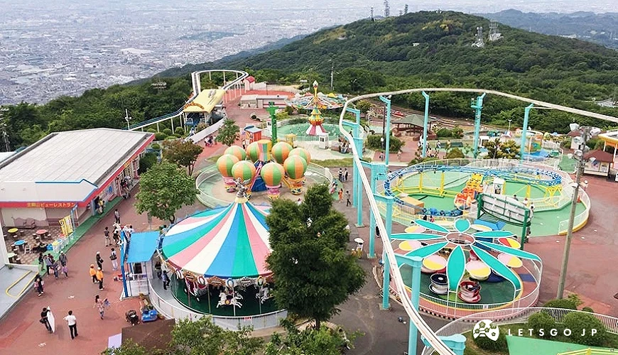 生駒山上遊樂園位於生駒山頂,能俯瞰奈良盆地與大阪平野,是奈良近郊非常受歡迎的景點,境內座落著大大小小的廟宇,可說是神靈匯聚之地,此外還有日本第一條營業用電纜車「生駒鋼索線」,因車廂造型十分可愛而廣受大人小孩喜愛,可搭乘這條電纜車前往充滿懷舊昭和風的「生駒山上遊園地」,園內有多達20種以上的遊樂器外可搭乘,如天女散花、海盜船、跑丁車等,還有日本現存最古老的飛行塔設施!