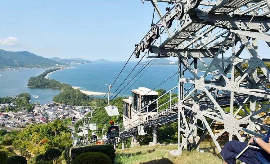 「天橋立纜車」是連接山麓與山頂展望台的重要交通工具,可依喜好選擇開放式吊椅纜車或封閉式單軌電車。乘坐纜車途中能俯瞰天橋立的沙洲與海灣全景,晴天時海天一色、景致壯麗。吊椅纜車因開放感十足,深受喜愛拍照的旅人歡迎;若與小孩或長輩同行,建議搭乘單軌電車,行駛平穩又舒適。
