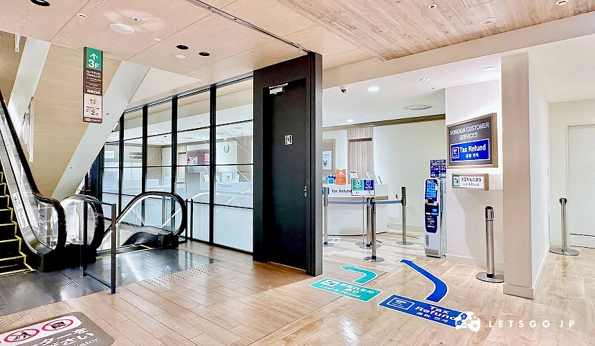 外國觀光旅客專用免稅櫃台位於2樓手扶梯旁,凡消費達免稅資格的旅客即可到這裡來進行退稅手續。另外,只要出示護照就能使用數位的5%來賓優惠券喔!兌換方式與使用規則請參考官方網站。
