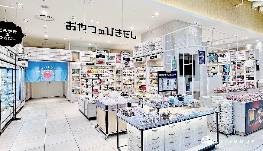 寬闊「零食抽屜」(おやつのひきだし)精選約700種日本各地零食點心!主打單包裝、價格親民,超適合來採購帶回國分送給同事、同學、親朋好友的伴手禮,賣場內還有活動場地空間,每週都會更換內容,能品嚐時下最具話題的熱門小點心。