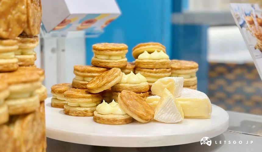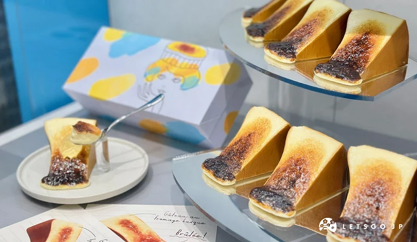 其中的招牌甜點「炙燒布蕾巴斯克起司蛋糕 Brûlée Merci」,選用澳洲產奶油起司,外層濕潤、內餡柔滑水嫩,經直火逐一炙燒後,表面形成香脆焦糖層。湯匙一挖,香脆中內濕潤融化感瞬間展現,是布蕾與起司完美結合的代表作。開店前就在門外大排長龍,都是為了這道人氣單品而來!另一項「炙燒奶油起司可頌派 Brûlée Creamy Aman」同樣是大阪限定商品,以可頌派為靈感的酥脆派皮,層層烘烤後再炙燒焦糖,內餡夾入濃厚起司巧克力奶霜,甜香與奶香交織,口感卡滋作響,喜歡酥脆系甜點的人絕對不能錯過。