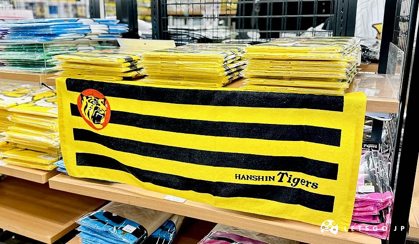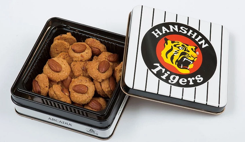 經典的「ARCADIA 罐裝餅乾」採用原創阪神虎設計鐵盒,以蛋白與堅果製成的馬卡龍風格餅乾,口感酥香不甜膩,復古感十足,送禮也相當體面。此外,球團旗圖樣的應援毛巾以鮮明的黃色與黑色條紋呈現,視覺對比強烈,不論在球場應援或日常使用,都能成為造型亮點,是阪神虎球迷必收的代表性周邊。