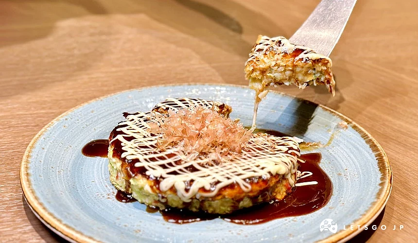 「蒲公英(タンポポ)」則是來自北新地的大阪燒與鐵板燒名店,採用國產小麥、山藥、雞蛋、高麗菜與海鮮粉調製,厚實麵糊煎至外酥內軟。推薦必點「豬肉起士大阪燒(吉田牧場卡喬卡瓦諾起司)」,煎製得圓潤精美的大阪燒中豪邁地加入岡山縣吉田牧場的卡喬卡瓦諾起司,牽絲的起士帶有濃郁奶香,與口感鬆軟味道清爽的大阪燒麵完美融合,加上風味十足但不會過鹹的醬汁,帶來更豐富層次的全新體驗!