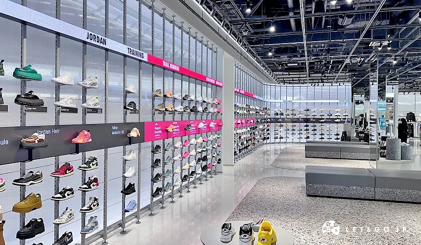 在「GRAND GREEN OSAKA」最具存在感的門面之一,就是位於一樓轉角處的「Nike Umeda」大型店舖。店內以未來感十足的銀白色系設計為主,寬敞明亮的空間,分區展示著各式最新鞋款、運動服飾及配件,品項超豐富,光是走進去就讓人熱血沸騰。