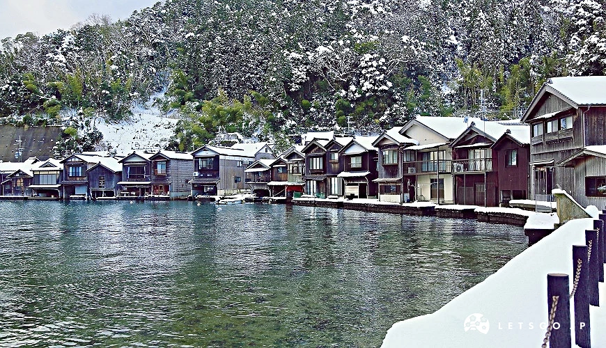 冬天的伊根靜謐又充滿魅力。雪花緩緩落在舟屋屋頂與海面上,描繪出宛如童話般的銀白世界,此時也是鰤魚與松葉蟹最肥美的季節,無論是鮮甜的蟹宴,或入口即化的鰤魚,都讓味蕾感受冬日極致的奢華。冰雪與海風交織的季節裡,展現出伊根最寧靜而動人的一面。提醒旅人們若是自駕前往欣賞白雪覆蓋的舟屋景色時,請務必注意路面結冰與天候狀況。